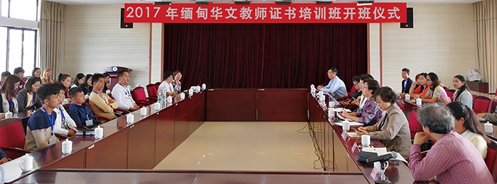 10月10日,2017年缅甸华文教师证书培训班开班仪式在永利官网办公楼502会议室举行。学校副校长熊晶,云南省人民政府侨务办公室副主任刘云娥、侨务办公室文化教育处副处长陈增国,昆明市人民政府外事侨务办公室主任杨志华以及缅甸华文教师培训班全体学员参加开班仪式。