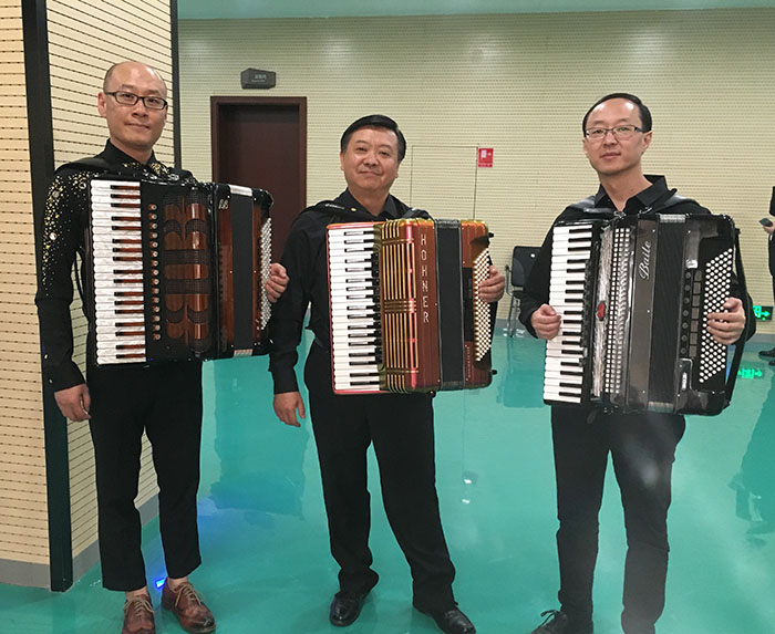在18日举行的中国第五届聂耳音乐(合唱)周“聂耳颂歌——2017昆明聂耳音乐节开幕式大型交响音乐会”上,yl23411永利集团官网室内乐团的音乐学院廖一瑄副教授、马宏援老师以及学前与特殊教育学院苏剑老师,与昆明交响乐团及中国国家交响乐团的两位歌唱家合作演奏夏良先生改编的《滇池圆舞曲》,这是手风琴首次与交响乐团共同奏响云南大剧院,而手风琴这件乐器的加入也赋予这首圆舞曲新的生命。