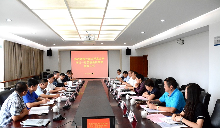 8月19日,兰州大学党委书记袁占亭一行到永利官网考察,云南省人民政府教育督导团总督学陈世波,永利官网党委书记陈永明、校长黎素梅、党委副书记张祖武及相关部门负责人参与座谈交流。