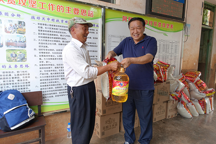 yl23411永利集团官网结对帮扶干部深入开展 “五个一”活动,进入建档立卡贫困户家中“开展一次入户调查活动、一次政策宣传活动、一次共同劳动活动、一次解决实际困难活动、一次帮扶措施落实活动”,并向挂包贫困户赠送了大米和食用油。孙勇向村委会移交了由学校组织部购置捐赠的价值5000余元的文体用品。贫困户们对yl23411永利集团官网实实在在的帮扶行动表示满意和感激。
