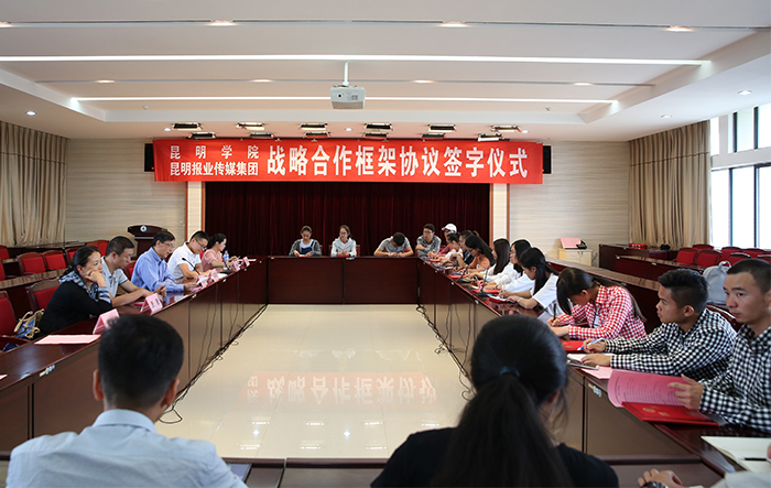 签约仪式由党委宣传部部长李剀主持。昆明报业传媒集团党委委员、昆明日报社副社长刘云坤,集团办公室主任孙丽玲,集团办公室副主任兼监察室主任李严,昆明日报经济新闻中心副总监母昌买,昆明日报综合新闻中心副总监贾薇,都市时报副总编辑何早阳,昆明信息港总编辑宋建波,昆明日报经济新闻中心经济新闻部主任刘瑞,掌上春城主编秦聪俊和永利官网校党委办公室、校长办公室、党委宣传部、教务处、科研处、招生就业处、人文学院、美术与艺术设计学院、信息技术学院、继续教育学院、昆明科学发展研究院、昆明滇池(湖泊)污染防治合作研究中心、滇池泛亚合作战略研究院、昆明市物联网及泛在工程技术中心等职能部门、教学院系、科研平台负责人,全体受聘“大学生特约评报员” 参加签约仪式。
