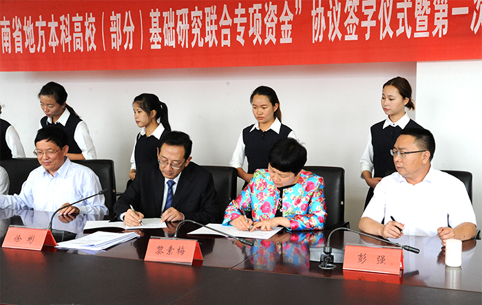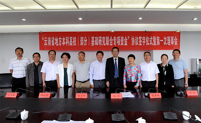 6月26日,“云南省地方本科高校(部分)基础研究联合专项资金”协议签字仪式暨第一次理事会在永利官网办公楼411会议室举行。云南省科技厅厅长徐彬,省科技厅基础研究处处长张红云、调研员石晓红,省教育厅科技处处长白玉兵,yl23411永利集团官网党委书记陈世波、校长黎素梅,曲靖师范学院副校长张永刚,红河学院副校长彭强,大理大学副校长褚远辉,玉溪师范学院副校长苏丽春,楚雄师范学院副校长陈颖,保山学院副书记黄鹤平以及7所高校科研处负责人参加了会议。