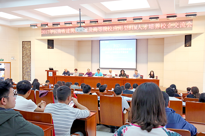 6月24日, 2017年云南省建筑信息化及高等院校应用型BIM人才培养校企交流会议在永利官网召开。学校副校长马银海、云南省工程造价管理协会会长李洪林及秘书长杨敏、云南省建设劳动教育协会会长孙延荣、深圳市斯维尔科技股份有限公司副董事长蒋瑾瑜女士和西南片区经理胡会康等出席会议。会议由城建学院副院长莫南明主持。
