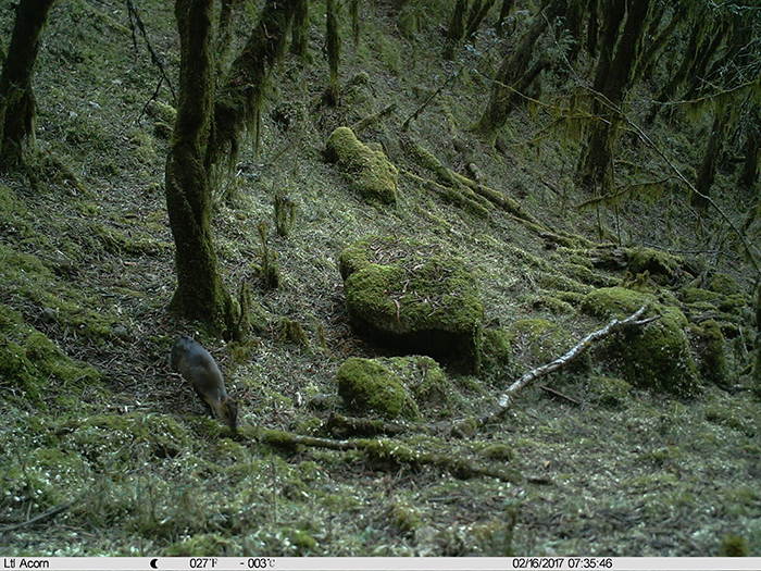 本次考察双方联合布设红外相机6台,拍摄照片近万张,成功拍摄到多种珍稀濒危动物。鸟类方面,记录到国家一级重点保护鸟类金雕(Aquila chrysaetos)和国家二级重点保护鸟类红腹角雉(Tragopan temminckii)、血雉(Ithaginis cruentus)。哺乳动物方面,记录到国家一级重点保护和中国生物多样性红色名录极危动物林麝 (Moschus berezovskii),国家二级重点保护动物黄喉貂(Martes flavigula)以及《国家保护的有益的或者有重要经济、科学研究价值的陆生野生动物名录》(简称“三有名录”) 动物小麂 (Muntiacus reevesi)的活动影像。