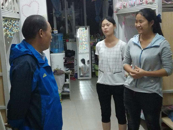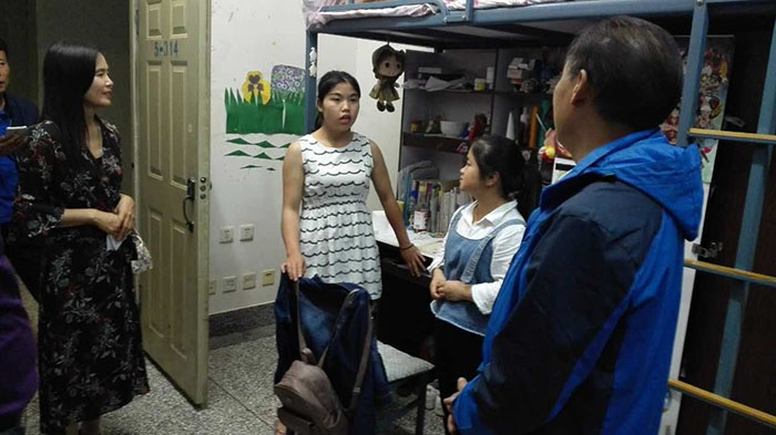 5月10日,校纪委书记王映平利用值班时间,在同班人员的陪同下,深入所联系院系的学生宿舍看望学生,了解学生学习、生活情况。