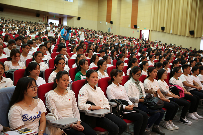 5月12日,永利官网纪念五四运动98周年暨建团95周年表彰大会在学生会堂隆重举行。党委书记陈世波,校长黎素梅,纪委书记王映平,副校长郭华、沈凡,副校级领导孙勇,学校全体中层干部,各院系团总支书记,全体辅导员以及全校受表彰的团员青年代表共1300余人参加此次大会。