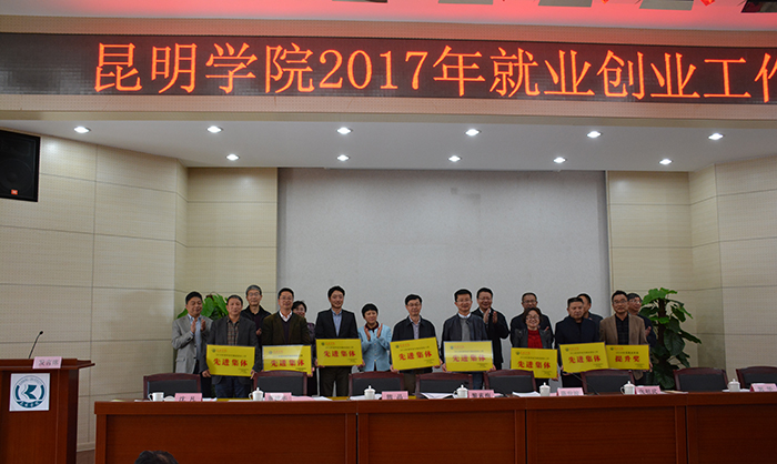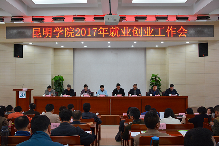 郭华副校长代表学校作2017年就业创业工作报告,回顾总结了学校2016年就业创业工作,对2017年工作做了安排部署。郭华指出,2016年学校就业创业工作领导重视,就业创业工作机制进一步理顺;精细管理,毕业生就业率和就业质量实现双提升,2016届毕业生就业率达97.43%,比去年提高了0.13%;热情服务,毕业生就业满意度持续提高,2016届毕业生就业满意度为95.57%,比去年增加了2.58%;精准发力,就业困难毕业生帮扶措施扎实有效,帮扶困难毕业生159人实现就业;搭建平台,学生创业工作取得新进展,被昆明市政府评为“就业创业示范学校”。同时,郭华强调,做好对2017年就业创业工作,一是提高认识,增强做好就业创业工作的责任感和使命感;二是加强教育,引导学生树立正确的就业观;三是落细落小,确保初次就业率和年终就业率不低于去年;四是完善措施,推动大学生创业工作再上新台阶;五是维护安全,确保毕业生顺利就业安全离校。