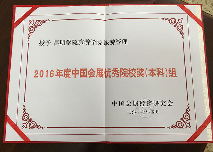 4月21日至4月23日,中国会展经济研究会第十三届年会暨中国会展经济(海口)论坛在海南省海口市召开,永利官网旅游学院获得2016年中国会展优秀院校奖(本科组)。