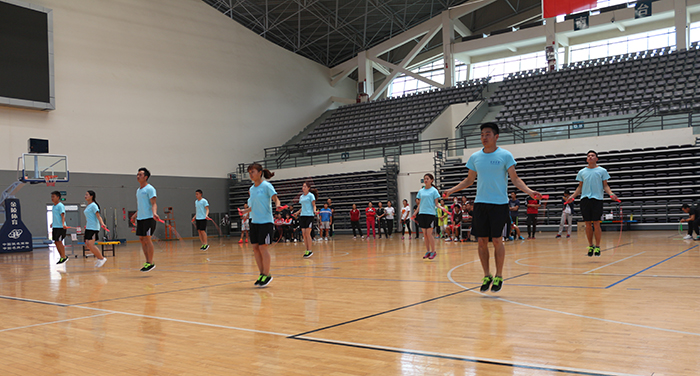 跳绳运动是永利官网公共体育课改革创新的重点项目,在校领导及有关部门的大力支持下,体育学院认真贯彻落实,以副院长周明教授为首席专家的执行团队,汇集了李素文、胡文武等一大批中青年骨干教师,在着力推进项目在深化课堂教学的同时,积极发挥体育学院作为跳绳运动排头兵的作用,充分利用课余时间,刻苦训练、积极探索,成功地组织了此次具有里程碑式意义的学生跳绳比赛。