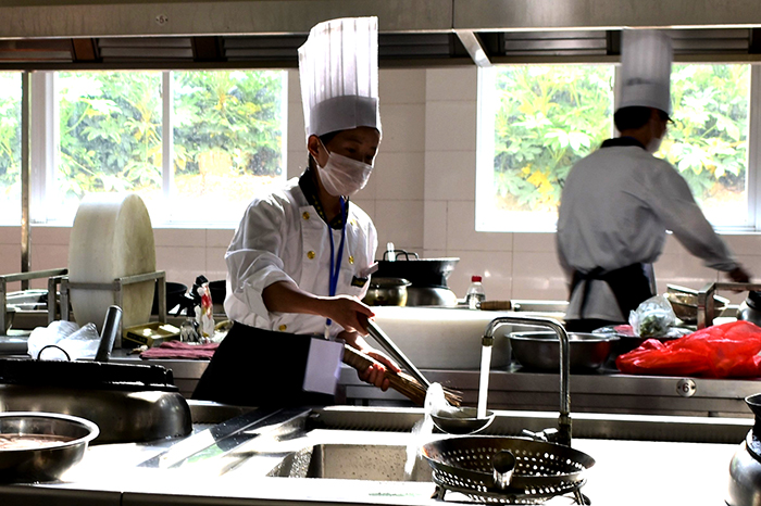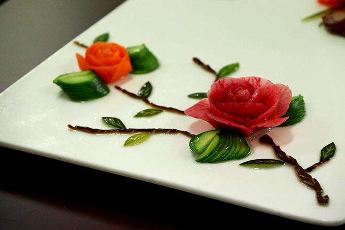 旅游学院主要负责本次的烹饪技能大赛,9位参赛选手分别在200分钟内做出一盘冷拼和一盘热菜。相同的命题考验的是同学的职业技能和创造力。一盘盘的菜如同一幅幅艺术品。永利官网在此次烹饪技能大赛中获得第三名的佳绩。