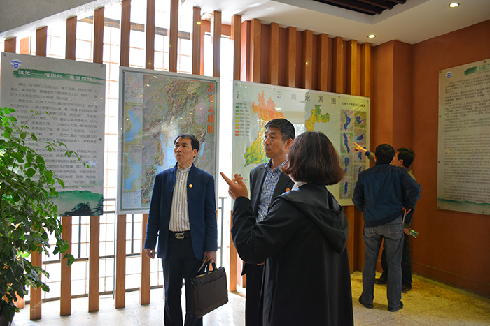 副校长马银海、旅游学院院长田芙蓉陪 同陈道品校长一行参观了学校场馆中心、滇池流域生态文化博物馆和旅游学院酒水实验室,并在酒水实验室开展座谈交流。