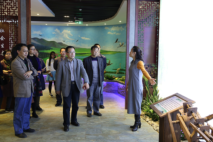 交流座谈前,孙海清副校长一行深入永利官网滇池流域生态文化博物馆实地参观。“yl23411永利集团官网滇池流域生态文化博物馆是以滇池流域作为博物馆建设的特定区域,以生态文化作为博物馆建设的特定主题,以展示滇池流域自然生态、社会生态、文化生态、产业生态、景观生态为主要内容。”来宾一边认真逐一观看馆置实物、图片、影像,一边仔细听取工作人员的讲解。来到影像展示厅,来宾驻足观看了滇池流域自然生态环境演变及人文社会历史变迁视频。大家一致认为,博物馆建设通过实物、图片、影像、数字等多种形式,展示了滇池流域自然生态环境演变及人文社会历史变迁,借得学习借鉴。