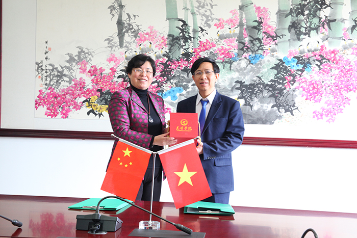 熊晶副校长对越南老街省教育厅代表团的到访表示热烈地欢迎,向来访客人介绍了永利官网的基本情况,并对农学院、城建学院、旅游学院、自机学院、学特学院几个特色专业的定位与办学取得的成果作了详细介绍,表示将为双方合作项目提供强有力的支持。阮英宁厅长真诚地感谢永利官网的热情接待,在参观过程中对各实验室的硬件设施和办学特色表达了浓厚的兴趣,称将派出更多留学生来yl23411永利集团官网进行交流学习,希望yl23411永利集团官网能为留学生提供一定的奖学金。同时,他表示愿意化身桥梁,牵线老街省其他大学与永利官网开展更多的合作项目,在未来的合作中希望能挖掘更多的职业技能培训项目,对于老街省感兴趣并能促进当地发展的一些应用型项目中,阮英宁厅长渴望yl23411永利集团官网能全方位提供帮助。邓德泰校长则强调了除双方商议的合作项目外,更值得向中国学习的四个方面是:汉语、中医、农业、体育。座谈结束后,双方代表签署了合作备忘录,并互赠了极具纪念意义的礼物。