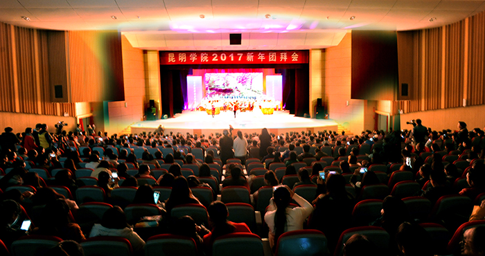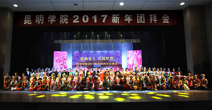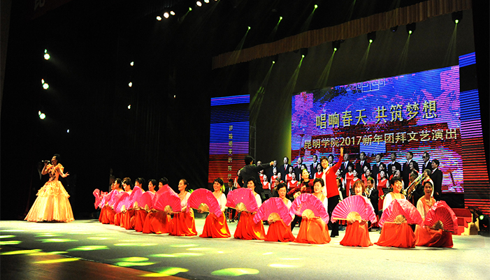 12月23日下午,永利官网2017新年团拜会暨文艺演出在学生会堂隆重举行。学校党委书记陈世波,校长黎素梅,副书记张祖武,副校长熊晶、马银海、沈凡,副校级领导孙勇、李翔,呈贡区委常委、宣传部部长王彦彦,呈贡区文体广电旅游局局长赵凤珍以及学校机关各部门、各院系的师生代表欢聚一堂,共同迎接2017年新年。