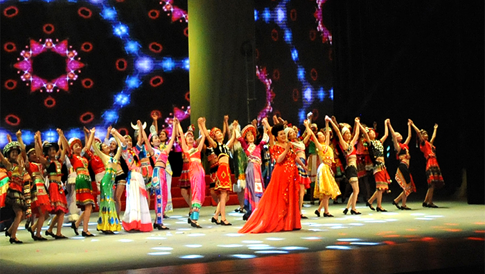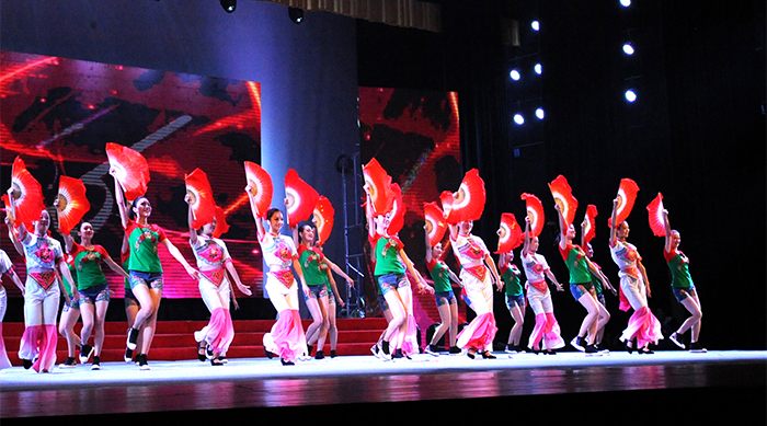 “春色满园•青春飞扬”章节以永利官网学生学习成果为表现内容。由音乐学院男声三人组合带来的云南省首届民族团结教育展演音乐类高校组作品一等奖歌曲《我们从这里出发》,旋律优美,和声层次丰满,瞬间抓住观众的心。体育学院体育舞蹈团带来的云南省首届民族团结教育展演体育舞蹈高校组一等奖作品《生生不息》,融入了民族风与体育舞蹈的元素,完美展现了永利官网学生的青春风采。由音乐学院天籁听心组合带来的云南省百首歌曲唱云南新作品二等奖获奖曲目《梯田夜话》,可谓是余音袅袅,美妙意境。音乐学院舞蹈团奉献的云南省首届民族团结教育展演民族舞蹈类高校组一等奖作品《我们的耍山调》,以浓厚的民族优美舞姿,讲述一个远久美丽的故事,让台下观众呼声连连。