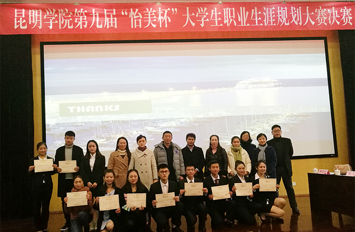 yl23411永利集团官网第九届“怡美杯”大学生职业生涯规划大赛得到了怡美集团的大力支持和赞助,同时也得到云内动力、昆明新迎第三幼儿园等单位领导的关心支持,并派出了具有丰富职场经验的相关部门领导担任本次比赛的评委。永利官网社管学院的领导和老师也给予了本次比赛鼎力相助、大力支持。