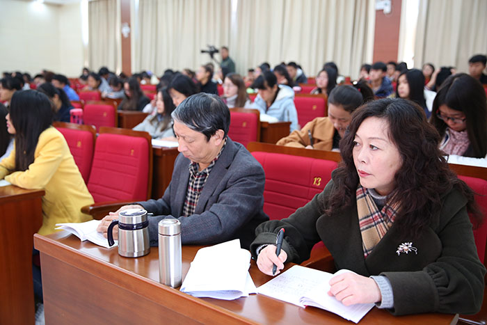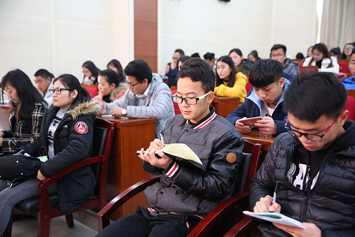 学校纪委书记王映平,副校长熊晶、郭华、董建华、马银海、沈凡,副校级领导孙勇、李翔和各职能部门、各院系党政主要领导(含主持工作),马克思主义学院教师代表、学生党员代表等200余人到场聆听报告。