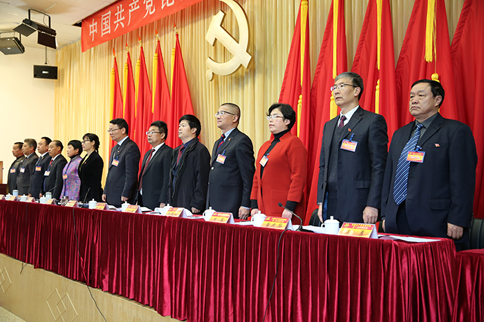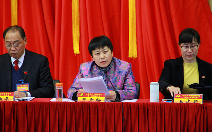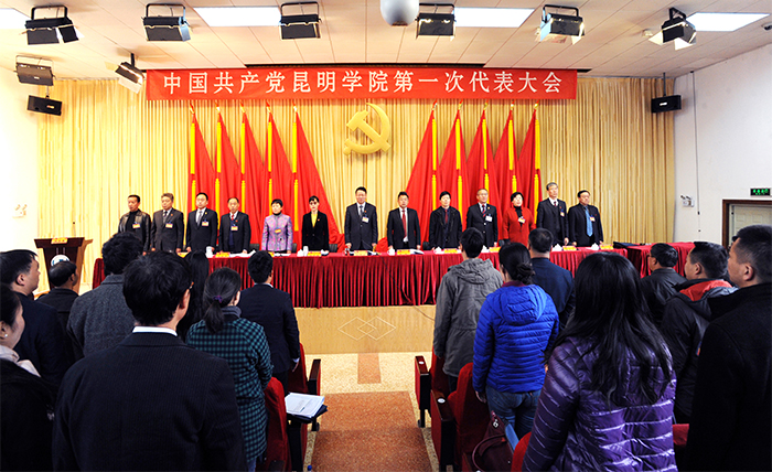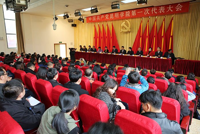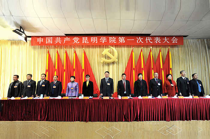 博文楼附楼报告厅气氛庄重、热烈,主席台后幕正中是镰刀和锤头组成的金色党徽及上方“中国共产党yl23411永利集团官网第一次代表大会”红色会标醒目而催人振奋。云南省委高校工委委员、省教育厅党组成员、省招生考试院党委书记王永全,昆明市委常委、市委组织部部长鲁斌,昆明市副市长王建颖应邀出席开幕式。大会主席团执行主席黎素梅、陈世波、张祖武、王映平、熊晶、郭华、董建华、沈凡、孙勇、李翔在主席台就座。