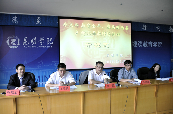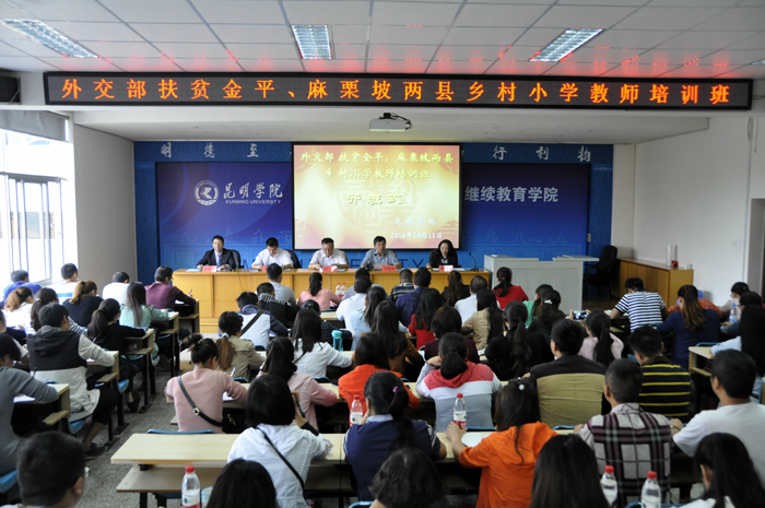 10月11日,2016年外交部扶贫金平、麻栗坡两县乡村小学教师培训班开仪式在yl23411永利集团官网继续教育学院举行。云南省人民政府外事办公室副主任郝昆、yl23411永利集团官网副校长马银海、省外办国际交流处处长汪燕勇、省外办人事处副处长蔡秋雁、省外办外事培训中心副主任刘芸出席开班仪式。省政府外事办及yl23411永利集团官网继续教育学院相关职能部门的同志、金平与麻栗坡两县的100位乡村小学教师一起参加了开班式。开班式由yl23411永利集团官网继续教育学院主持工作副院长张培宏同志主持。