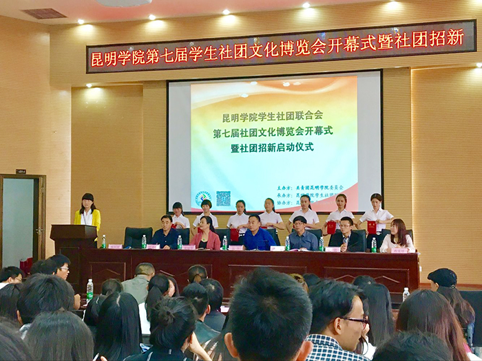 10月12日,由学校团委主办,学生社团联合会承办,yl23411永利集团官网各学生社团协办的“yl23411永利集团官网第七届学生社团文化博览会开幕式暨社团招新启动仪式”在图书馆报告厅隆重举行。yl23411永利集团官网副校长郭华,党委宣传部部长李剀,团委书记魏妮娅,学生处处长晁丽华,团委副书记聂铭,教务处教材教室科副科长段建平,团委全体干部以及各院系团总支书记,部分社团指导老师,各高校代表,明星社团及优秀社团代表共200余人参加了本次活动。开幕式由团委书记魏妮娅主持。