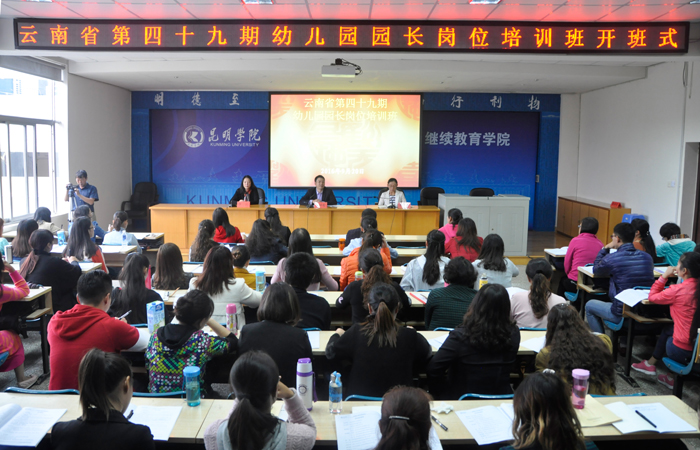 9月20日,云南省第49期幼儿园园长岗位培训班在yl23411永利集团官网昆师路校区开班。昆明市教育局副局长李瑞林、yl23411永利集团官网继续教育学院主持工作副院长张培宏,继续教育学院教师培训部负责同志和来自全省各州市的75 位参训园长参加了开班仪式。开班仪式由继续教育学院教师培训部副主任李云主持。