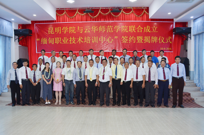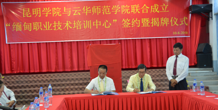 8月10日,为了积极响应国侨办提出的华文教育转型升级发展的指示,在云南省侨办的大力支持和帮助下,yl23411永利集团官网与缅甸云华师范学院在曼德勒签署合作协议联合成立职业技术培训中心并举行了签约暨揭牌仪式。yl23411永利集团官网副校长李翔、外国语学院副书记马洪波、国际交流合作处项目负责人解燕勤、云南海外文化教育中心缅甸分中心主任唐建军先生、缅甸曼德勒云南同乡会会长、云华师范学院董事长尚兴玺先生及云南同乡会副会长、理监事和云华师范学院校董等30余人出席。