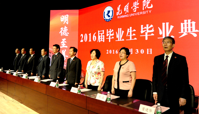 同学们在校期间,正处于学校建设发展的关键时期,我们共同迎来了转型、内涵、特色发展给学校带来的新机遇、新挑战;见证了学校本科教学工作合格评估的高质量通过和当选全国文明单位、转型试点高校、五一劳动奖单位的喜悦;你们看到了学校以服务云南省八大重点产业为抓手,向服务地方经济社会又迈出了坚实一步;你们和学长及老师们也用实际行动创造了毕业生就业率连续5年保持全省高校前列,连续7年荣获“云南省高校毕业生就业工作目标责任考核一等奖”的成绩。学校的发展和成绩的取得,与你们的努力是分不开的,我向你们表示衷心的感谢!目前,学校正紧紧围绕更名大学的目标,坚持转型发展、内涵提升、重点突破,为建设全国同类高校领先、办学特色鲜明的综合性应用型大学而努力。