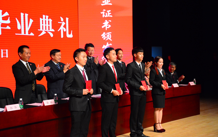 副校长马银海在会上宣读《yl23411永利集团官网关于审定和授予2016届全日制本专科毕业生毕业资格和学士学位的决定》。全体校领导为毕业生代表颁发毕业证书。经yl23411永利集团官网第二届学术委员会学位评定委员会委员审定通过,2016年,全校共有3606名学生获得本科毕业资格、961名学生获得专科毕业资格。