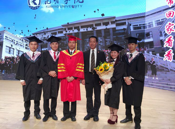 6月30日上午, 来自永利官网经济学院国际经济与贸易专业及工商管理专业的四名老挝籍留学生与中国同学一起参加了隆重的毕业典礼。四名留学生盛装出席,他们一一从校领导手中领取了毕业证书和学位证书,脸上都洋溢着自豪的笑容,心中更是热血沸腾的激动。