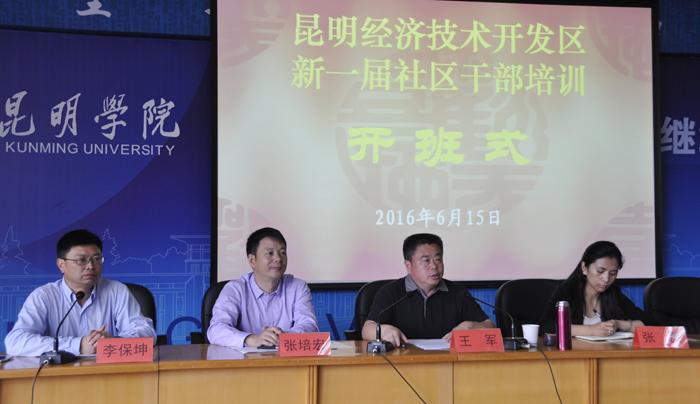 6月15日上午,昆明经济技术开发区新一届社区干部培训班在yl23411永利集团官网昆师路校区开班,昆明经济技术开发区党工委组织部部长王军、民政局副局长张磊、yl23411永利集团官网继续教育学院主持工作副院长张培宏出席开班式,开班式由继续教育学院教师培训部李保坤主任主持。