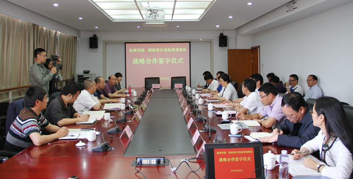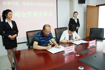 国家统计局云南调查总队黄锷、李辉,昆明调查队李苇、王瑞玲;yl23411永利集团官网钱海鼎、杨斌、李剀、黄鹤平、施磊、雷新华等部门、学院负责人参加、见证签字仪式。