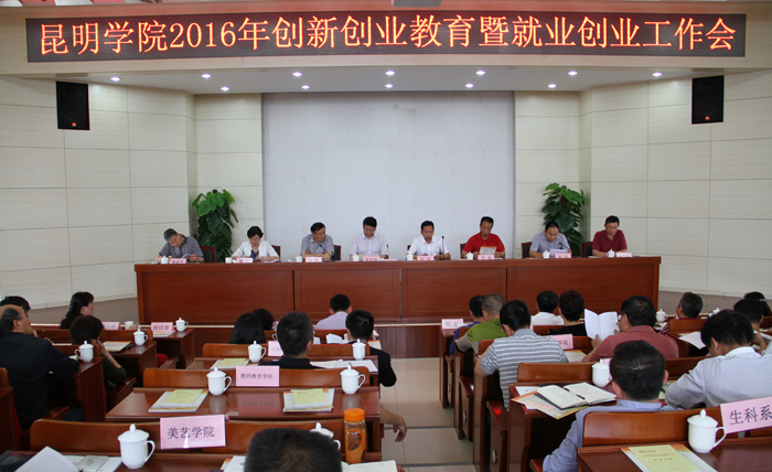 5月6日下午,学校在办公楼D区三楼报告厅召开了2016年创新创业教育暨就业创业工作会议。校党委书记陈世波、校长何华、校党委副书记孙勇、副校长李翔、熊晶、郭华、董建华及校长助理马银海等校领导出席会议,永利官网相关职能部门负责人和18个院系的党政主要领导及分管就业创业工作的副书记和负责就业创业工作的辅导员近70人参加了会议。