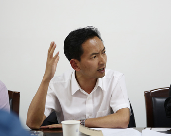 体育学院党政领导班子全体成员、各教研室负责人、骨干教师及教师代表等参加调研。体育学院院长孙晓坤代表班子作工作汇报,介绍了班子成员分工情况,谈了工作思路和打算,汇报了现阶段工作进展情况,剖析了存在的问题,提出了发展方向,请示了学校需要帮助解决的困难。与会教师也从不同的角度谈了想法,提出了合理性意见和建议。
