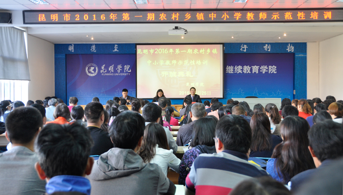 4月25日上午,昆明市2016年第一期农村乡镇中小学教师示范培训在yl23411永利集团官网昆师路校区开班。昆明市教育局副局长李瑞林、yl23411永利集团官网继续教育学院副院长张培宏出席开班式并作动员讲话。参加本次培训的200名学员分属初中语文、初中数学、初中英语及初中物理4个学科,每学科50人,来自昆明市各县(市、区)及滇中新区的农村乡镇初级中学。