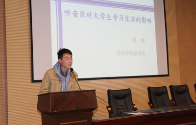 3月31日下午,yl23411永利集团官网“辅导员讲坛”第九讲在图书馆报告厅开讲,本讲主题为《 听音乐对大学生学习生活的影响》,由永利官网音乐学院辅导员李想主讲。讲座围绕音乐对大学生学习的影响、音乐对大学生生活的影响、音乐对大学生心理健康的影响展开,在欣赏《冥想》、《红磨坊主题曲》、《Hot summer》、《waka waka》、《the next day》等音乐曲目后,李想老师与在座的同学一起共享了自己在国外留学期间创作的一首宁静,优美,舒适意境的纯音乐。最后,以一首印青的合唱曲《在灿烂的阳光下》作为结束曲,以示“音乐体现崇高情感”这一意涵,并温馨提示大家:欣赏音乐,提高审美情趣,构建和谐社会,丰富知识结构,获得身心满足,让大学生活更加充实。