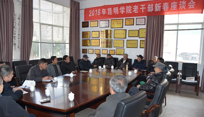 1月22日上午,虽然几十年难遇的极端寒冷天气使昆明寒风凛冽,但yl23411永利集团官网昆师路校区老干活动中心却暖意融融,这里正在召开2016年yl23411永利集团官网离退休老干部新春座谈会。yl23411永利集团官网何华校长、党委副书记孙勇、校办主任杨跃、昆师路校区管委会主任杨茂泉、后勤集团总经理冯坚以及离退休党总支书记何俊出席了座谈会。姚忠庆、陈兆雄、杨家寿、邢成勋、陈国礼、黄启后、李修华、陈仁远等近二十位离退休老干部代表参加了座谈会。会议由孙勇主持。