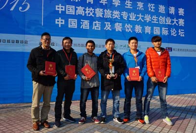 旅游学院经过旅游文化节的选拔比赛,组成了由烹饪教研室王京法副主任为领队,烹饪实验室杨春雷副主任为指导教师,2013级烹饪与营养教育专业的夏振鹏、李福寿为队员的参赛队伍。本次比赛分高校组和中职组进行,高校组22个队,中职组18个队。采用淘汰赛的形式进行。比赛队伍汇集了高校、中职学校的烹饪精英,永利官网与扬州大学、河北师范大学、四川旅游学院等老牌劲旅同台竞技,是永利官网参与同类比赛中规模最大、难度最高的一次。经过赛前培训、准备,在第一阶段晋级赛(前10名晋级)中以第5名的成绩脱颖而出。第二阶段因对大赛组织方提供的食材把握不到位,痛失进入厨王挑战赛决赛的机会。