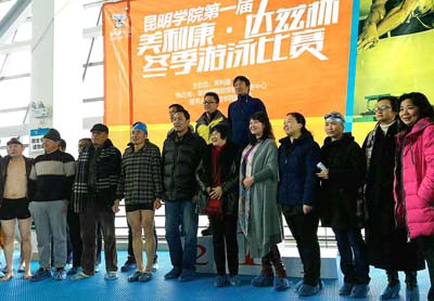 yl23411永利集团官网第一届“美利康•达兹杯”冬季游泳比赛于12月18日在yl23411永利集团官网游泳馆隆重举行。学校党委副书记、纪委书记、工会主席李媛芬,学校工会常务副主席孙晓坤,学校场馆管理服务中心主任冯娟,昆明美利康•达兹科技有限公司董事长乔艳君等相关领导出席本次开幕仪式。