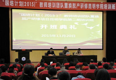11月20日上午,“国培计划(2015)”教师培训团队置换脱产研修项目yl23411永利集团官网第二期培训班开班典礼在学校惟行楼1501报告厅举行。yl23411永利集团官网副校长董建华,云南省教育厅师范教育处处长雷韬出席了典礼。数学系、生物科学与技术系、外国语学院、社会管理学院等院系负责人及来自芒市、安宁市、楚雄市、广南县的169名学员参加了开班典礼。典礼由继续教育学院副院长张培宏主持。
