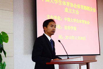 上午9时,在yl23411永利集团官网办公楼D区三楼报告厅隆重举行成立大会。大会由中国大学生体育协会主办,云南省教育厅、云南省体育局承办,yl23411永利集团官网协办。中国大学生体育协会李良忠先生主持成立大会。