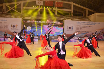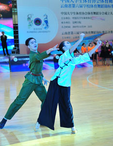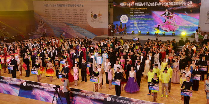 11月20日晚,“2015年中国大学生体育舞蹈锦标赛暨云南省第六届学校体育舞蹈锦标赛总决赛”在yl23411永利集团官网体育馆举行。北京体育大学等来自全国63所大学的一千多名运动员、领队教师及裁判员参加了开幕式。这是迄今为止规模空前的同类赛事。