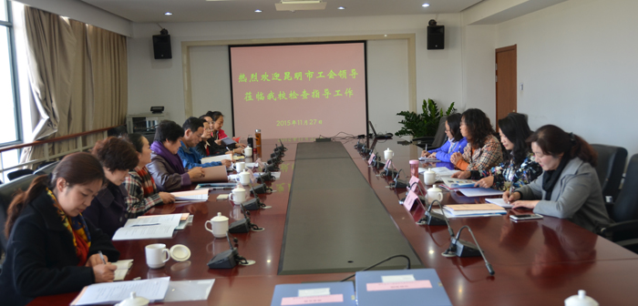 11月27日,yl23411永利集团官网工会女工委员会接受了昆明市工会女职工组织规范化建设检查组的工作检查和指导。昆明市总工会副主席、女职工委员会主任刘辉,昆明市教卫文工会主席楼波等一行7人以及永利官网工会常务副主席孙晓坤、校工会副主席刘宇红、校工会女工委员会委员代表、基层工会女工委员代表参加了会议。