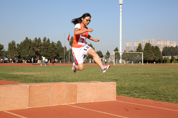 本届运动会将竞技运动与趣味运动相结合,不光做到有“技”可竞,还要有“趣”可寻,比赛性、观赏性、趣味性兼备。竞技方面,在保留以往“100米”、“跳远”等传统竞技类项目,继续发扬优良传统,进一步加强组织工作,提升参赛人数,提高比赛的专业水平。在组织好传统竞技项目的同时,增加、引入了富有趣味性的群众健身项目,不仅有全校师生“环校园跑”,还增加了“齐心协力接力”、“篮球(运球上篮)”、“排球(发球)”、“足球(定点踢准、定点射门)”、“拔河”等项目,极大地激发了师生的参赛兴趣、增强了比赛的趣味性。据统计,趣味性健身项目吸引2000余名从未参加过田径项目比赛的学生参加了比赛。