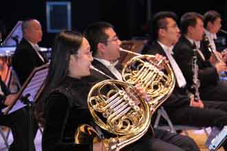 昆明聂耳交响乐团的艺术家们为永利官网师生演奏了关峡的《节日序曲》、那少承的《滇池圆舞曲》、鲍元恺的《紫竹调》《猜调》、杜鸣心的芭蕾舞剧《红色娘子军》组曲之《军歌》《操练》《快乐的女战上》《万泉河水》、丁晓里的《中国心》、柴可夫斯基的芭蕾舞剧《天鹅湖》组曲之《场景》《四小天鹅》《拿波里舞曲》、奥芬•巴赫的《康康舞曲》、约翰•施特劳斯的《拨弦波尔卡》《铁匠波尔卡》《拉德斯基进行曲》。