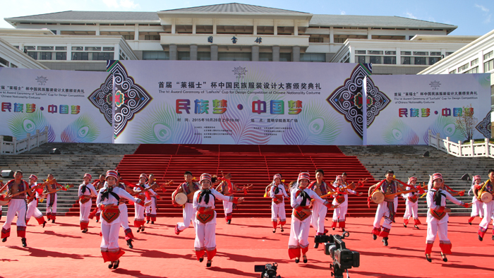 10月28日上午,2015首届“莱福士”杯中国民族服装设计大赛颁奖典礼暨展演活动在yl23411永利集团官网聂耳广场隆重举行。