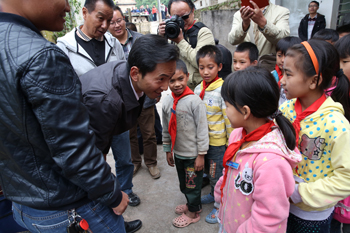 座谈结束后,何华、李翔一行来到腊哈小学深入校舍看望师生、了解基础教育情况,并代表学校捐赠学生体育用品。“小朋友,多大啦?”“在家里吃些什么?”“冷不冷?”“在学校快乐吗?”何华走进幼儿班俯身关心地和小朋友们交流。何华、李翔把足球、跳绳等一一送到高年级小朋友手中,希望小朋友们健康、快乐成长,从现在做起,做个听话的、爱学习、爱劳动的好孩子,将来向大哥哥、大姐姐们一样到县城、省城、省外学习,待学业有成后又回到家乡建设我们自己的美丽家乡,让家乡不仅有绿水青山、还有金山银山。