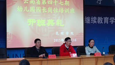 10月12日上午,云南省第47期幼儿园园长岗位培训班在yl23411永利集团官网昆师路校区开班。昆明市教育局副局长李瑞林、yl23411永利集团官网继续教育学院院长陈嘉,继续教育学院教师培训部负责同志和来自全省各州、市的53位参训园长参加了开班仪式。开班仪式由继续教育学院副院长张培宏主持。