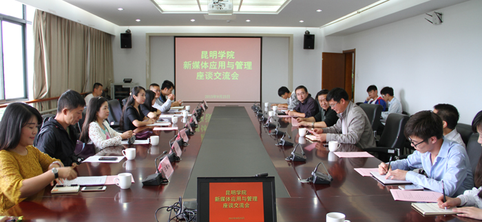 学校党委宣传部、团委、人文学院负责人,负责yl23411永利集团官网微信公众平台、昆院人生活圈、团委微信公众平台、昆院校报微信公众平台的学生参加座谈交流,分别介绍了微信等新媒体的应用和管理情况。