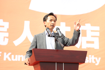 何华勉励同学们:酒香也怕巷子深,真正优秀的人才从来不惧怕接受社会的挑选和实践的检验。yl23411永利集团官网人才店的开张,就是给昆院的优秀学子们一个秀出自己的舞台,同学们,勇敢的表现自己吧!这是一个竞争的时代,竞争就是挑战,挑战就是机遇,敢于竞争才能赢得机遇。世界那么大,你一定要去看看,你若不勇敢,谁替你去看?