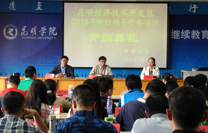7月7日上午,昆明经济技术开发区2015年新任领导干部培训班在yl23411永利集团官网昆师路校区开班,昆明经济技术开发区工委组织部副部长许嫚容、yl23411永利集团官网继续教育学院院长陈嘉参加开班仪式,开班仪式由继续教育学院教师培训部主任李保坤主持。